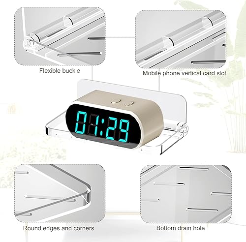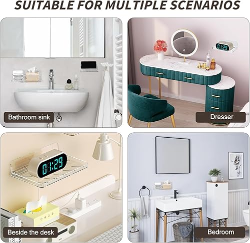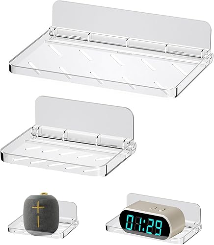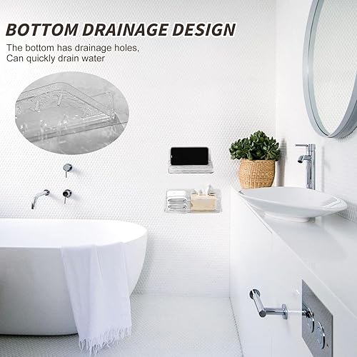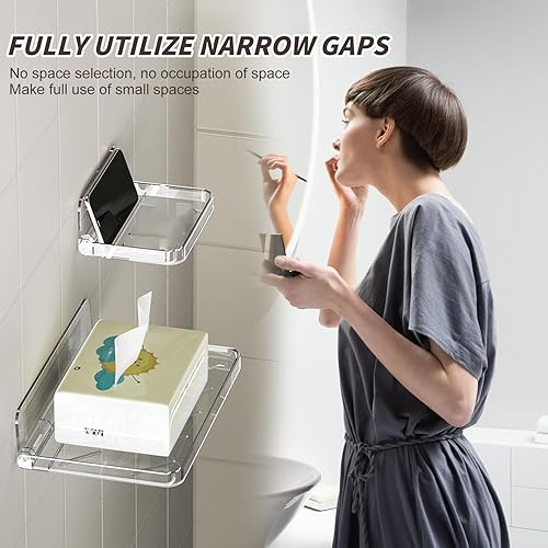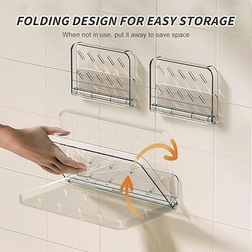 jinminamz Rangement Douche Sans Percage,Etagere Murale Sans Percage 2 Pièces,éTagèRe Murale Sans Percer Pliable Tablette Douche,Transparent