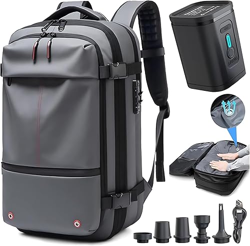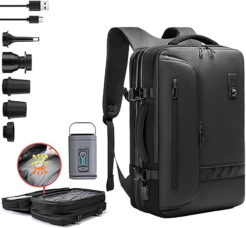 Sac à dos sous vide 40 L - Grande capacité - Extensible - Économiseur d'espace - Résistant à l'eau - Sac à dos de voyage antivol avec compression sous vide et pompe