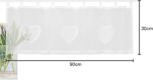 HOME WOHNIDEEN Corazon 52417-0101 Rideau Brise-bise en Batiste avec Bordure en Crochet 30 x 90 cm (h x l) : 30 x 90 cm Blanc