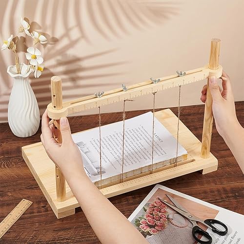 BENECREAT Ensemble de Cadre de Couture pour Reliure de 40x24cm Outils de Reliure de Livres à Faire Soi Même avec Corde de Chanvre pour L'Artisanat de Reliure de Livres et les Fournitures de Couture
