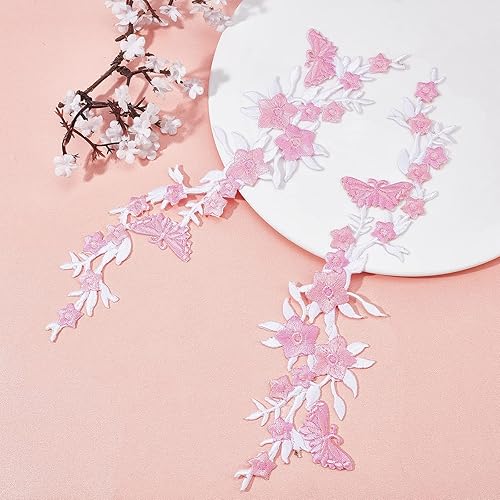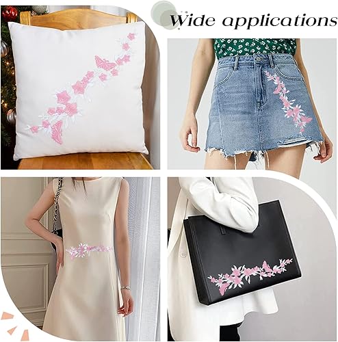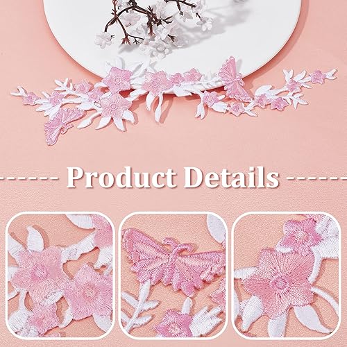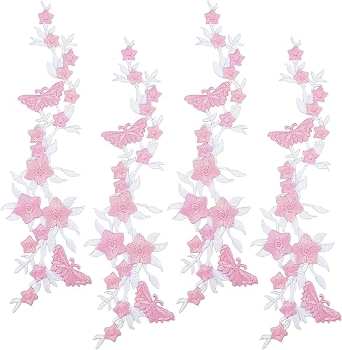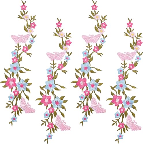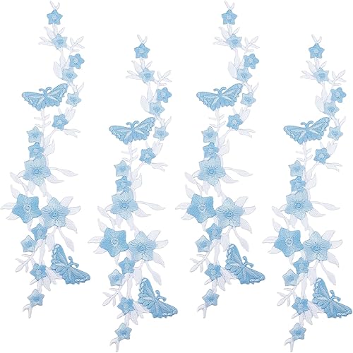 GORGECRAFT Lot de 4 Patchs Papillon Brodés et Fleurs Florales Thermocollantes à Coudre pour Vêtements Décolleté Embellissement Coupe (Bleu Ciel Clair)