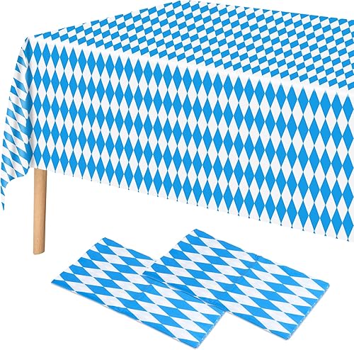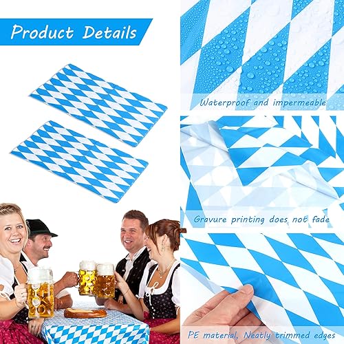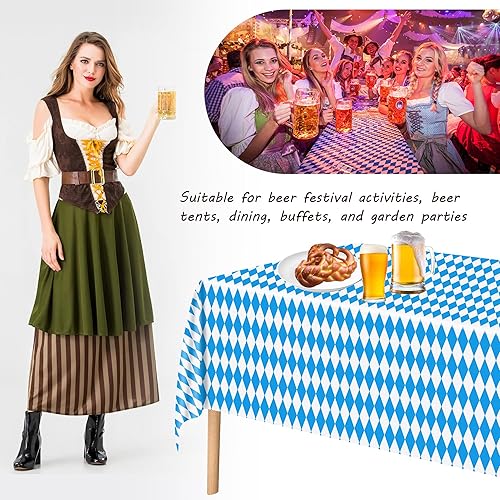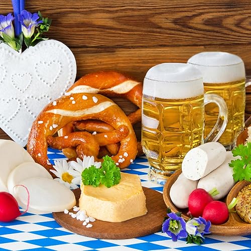 YiliYa Lot de 2 Chemin de Table Losange-Bleu Nappes pour Fête de Bière Nappes Bavarois Bleu Blanc Décoration pour Bavière Oktoberfest Fournitures de Fête 137 x 274 cm