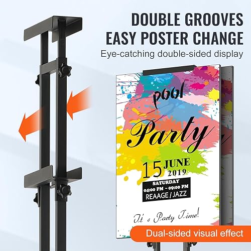 VEVOR Porte-Affiche 10-190,5 mm Hauteur Réglable Présentoir sur Pied Double-face Panneau d'Affichage en Aluminium avec Base Métallique Stable pour Menu Information Mariage Restaurant Musée Magasin