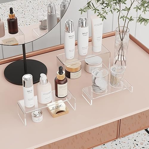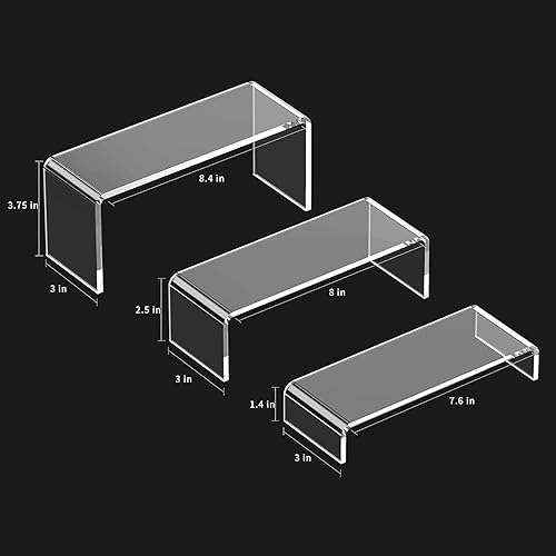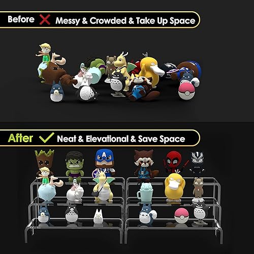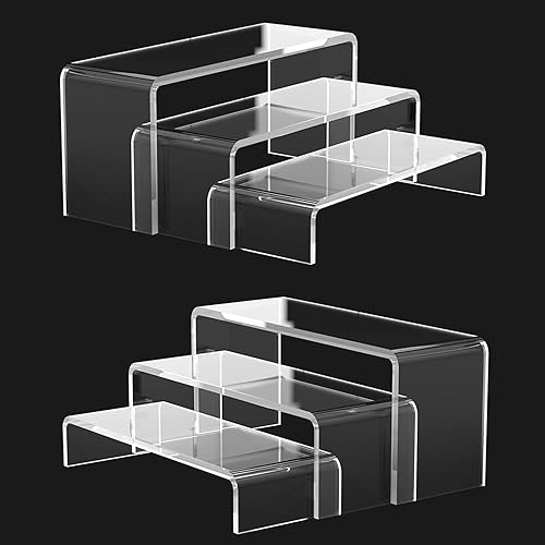 Janaden Lot de 2 présentoirs transparents en acrylique pour figurines POP, étagère de vitrine à 3 niveaux, présentoir à cupcakes et desserts