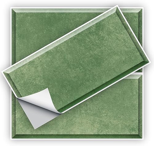 Hixingo Carrelage Adhesif Mural Cuisine, 6/12/24 Pièces Salle de Bain, Rectangulaires Credence Adhesive pour Cuisine, Dalle Pvc Adhesive Murale Carrelage Autocollant (Vert Mousse,6 pièces)