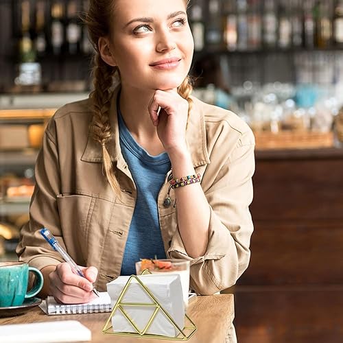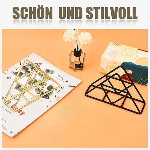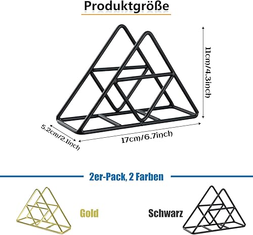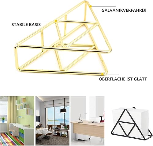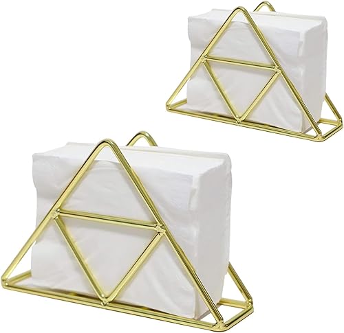 Lot de 2 porte-serviettes en fer, porte-serviettes en métal doré, porte-serviettes triangulaires, porte-serviettes en papier pour tables de cuisine, tables à manger, tables de pique-nique