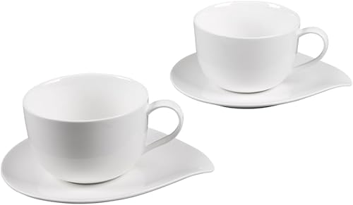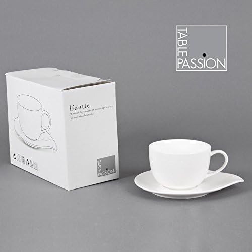 TABLE PASSION - COFFRET 2 TASSES + SOUS TASSES MAXI DEJEUNE 55CL GOUTTE PORCELAINE BLANCHE