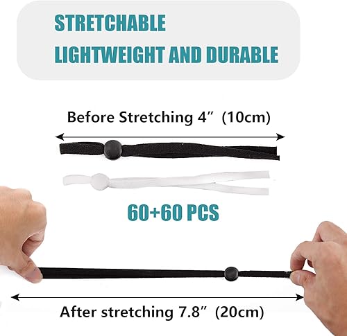 TOYMIS 120 pièces Bandes élastiques de Couture Avec Boucle Réglable Boucle d'oreille corde Pour Fournitures de Bricolage (Blanc et Noir)