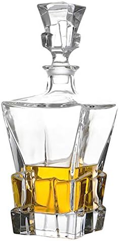 Carafe à décanter en verre avec bouchon géométrique hermétique – Décanteur à whisky pour vin, bourbon, brandy, liqueur, jus, eau, bain de bouche, verre italien sans plomb (750 ml/glaçon)
