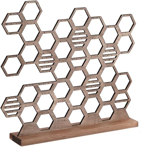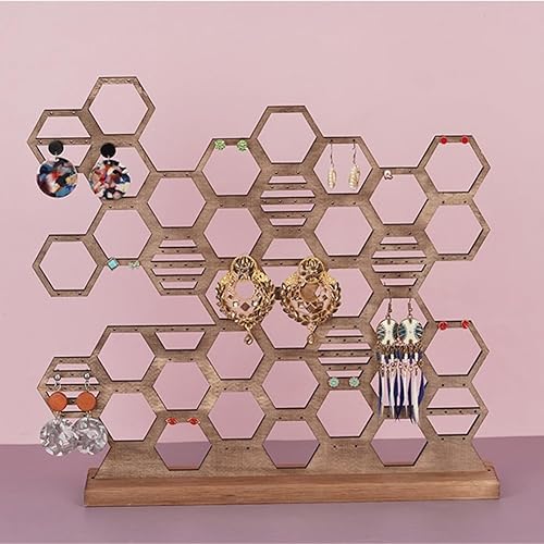 Ziiyoilh Support de Boucles d'oreilles Suspendu Marron Foncé, Support de Boucles d'oreilles en Nid d'abeille, Support à, Ruche en Bois, Présentoir de, Organisateur