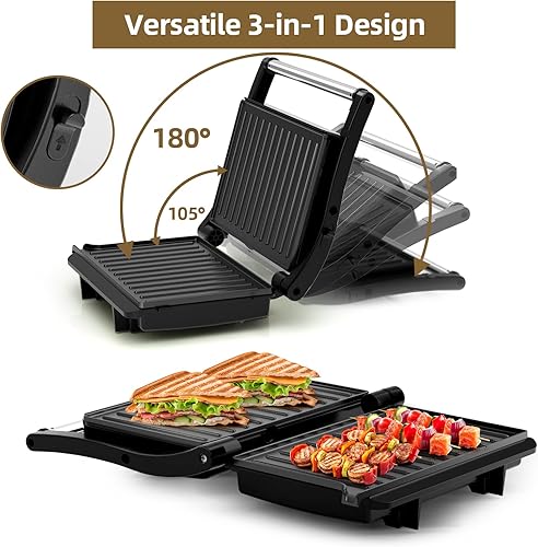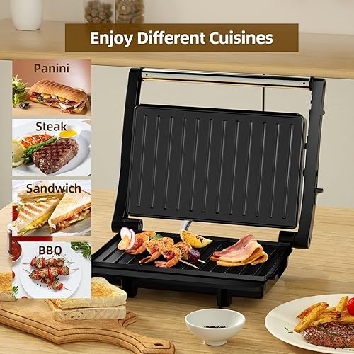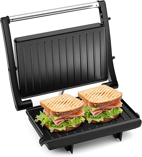 OSTBA Grille-pain Panini, Grill de contact XXL 1000 W, Grill Panini électrique avec revêtement antiadhésif, Ouverture à 180 degrés, Voyant lumineux, Facile à nettoyer et numéro de modèle - SL-106