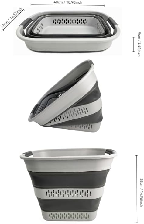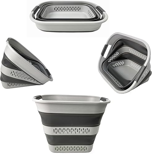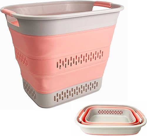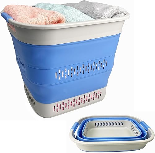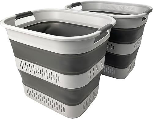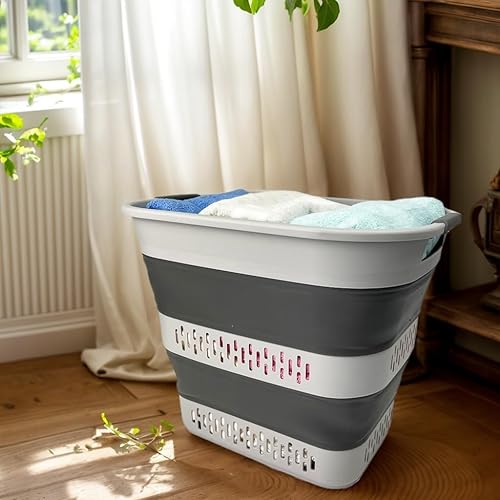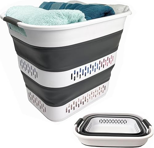 SAMMART Panier à linge pliable en plastique, 40 L, boîte de rangement pliable et pop-up - Panier à linge portable - Gain de place (1, blanc/gris acier)