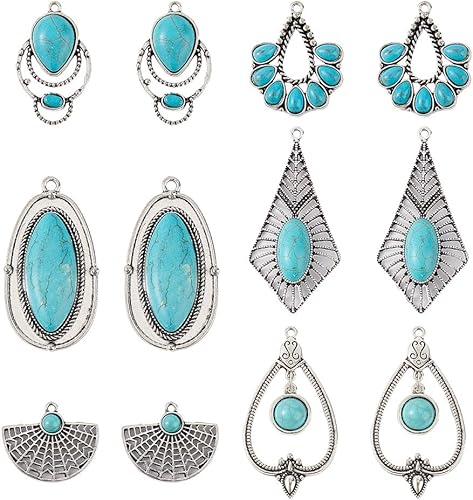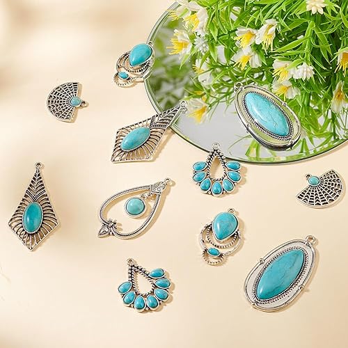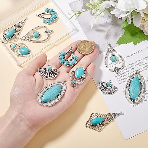 GOMAKERER 12pcs 6 styles Breloques Turquoise de Style Tibétain, Pendentifs en Alliage de Pierres Précieuses Breloques Rétro Occidentales Pendentifs Pendants pour Fabrication de Bijoux, Artisanat DIY