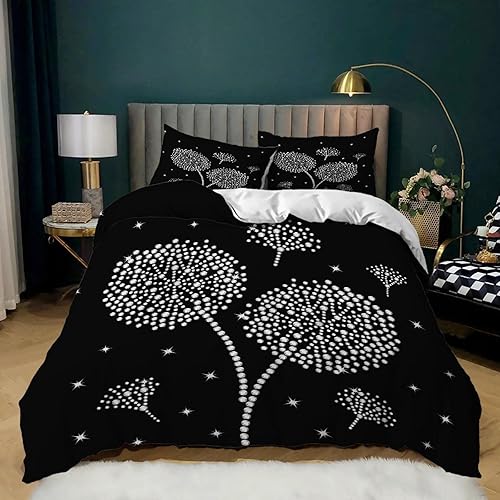 BUCROS Housse De Couette en King Noir et Blanc Dessin animé Pissenlit 240x280 CM Ensemble De Couette en Couette De Couette en Microfibre Réversible Moderne 3 Pièces - 1 Housse De Couette