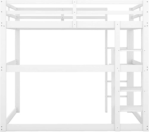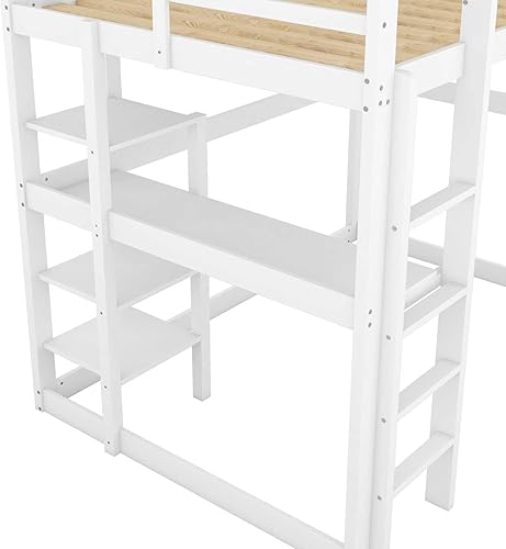 YEHTOKHOME Lit loft Moderne 140x200cm avec Bureau et escalier, Multifonctionnel lit Mezzanine en Bois avec étagères, Garde-Corps et sommier à Lattes(sans Matelas) (Naturel)