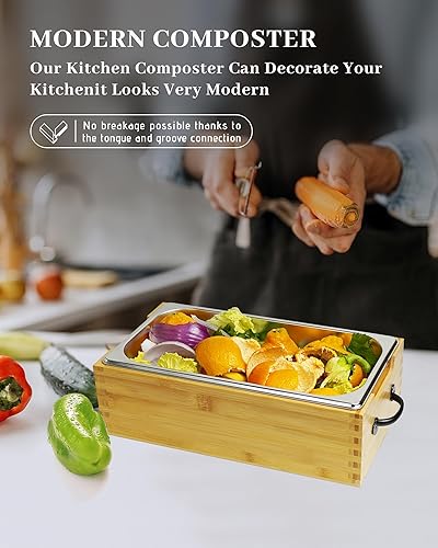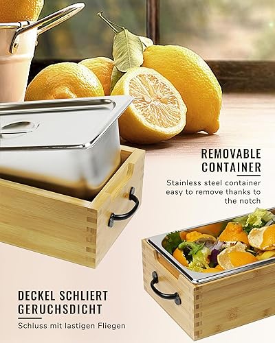 GOURDBRO Poubelle Cuisine avec Couvercle, Poubelles à Compost en Acier Inoxydable, Composteur Cuisine, Seau Compost Conviennent au Stockage Quotidien des Déchets Organiques, 5.6L