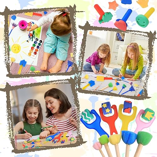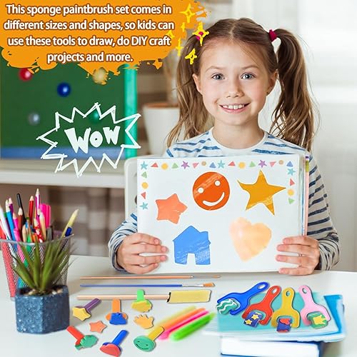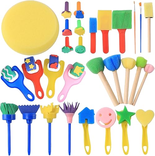 Éponge Brosses de Peinture Kit, 30 Pièces Pinceau de Peinture en Éponge, Pinceau Mousse, Coloré Eponge Peinture Pinceau, Éponge Peinture Pinceaux Kit pour Peinture, Artisanat, Bricolage