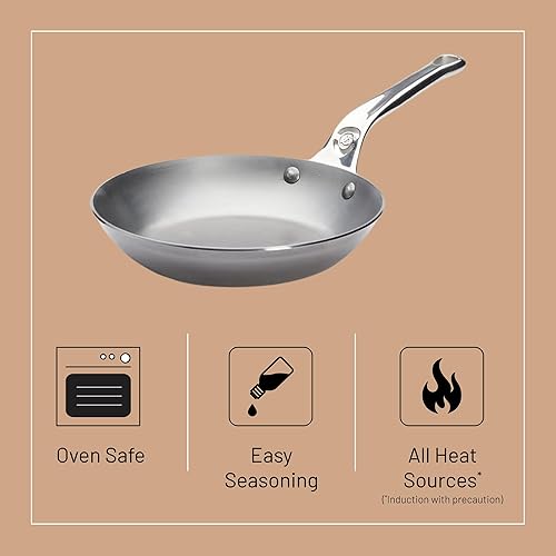 De Buyer - Poêle ronde en tôle d'acier MINERAL B Pro - 20 cm - Fabriquée en France, Sans PFAS, Anti Adhérence Naturelle, Queue Ergonomique et Finition à la Cire d'Abeille, Tous Feux + Four