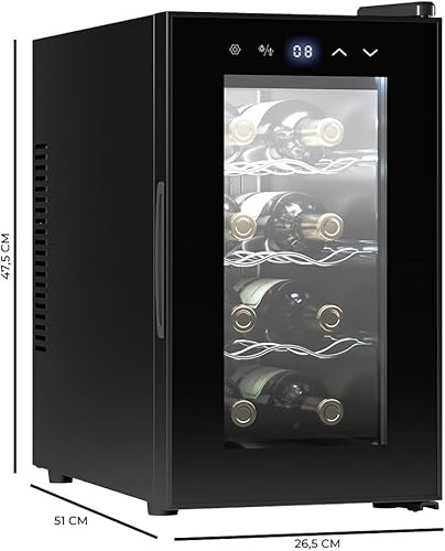 Cecotec Cave à vin 8 bouteilles Bolero Grandsommelier 830 coolcrystal, Refroidissement thermoélectrique, Température réglable entre 8 et 18°C, Commande tactile et affichage, Gaz non nocif.
