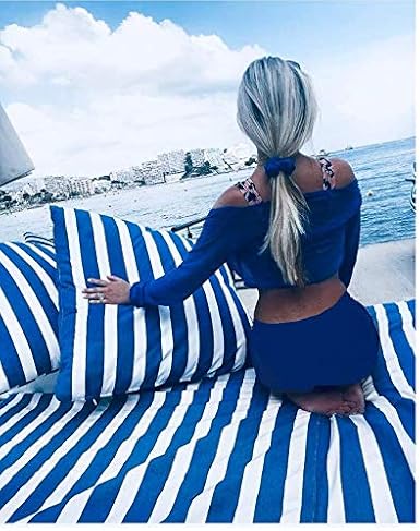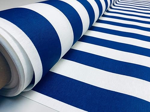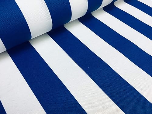 Tissu en téflon imperméable à rayures d'extérieur – 4 cm de large – Toile pour coussin, plage, tonnelle – 140 cm de large (vendu au mètre) (bleu roi et blanc, 1 m)