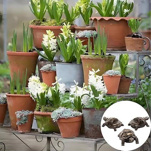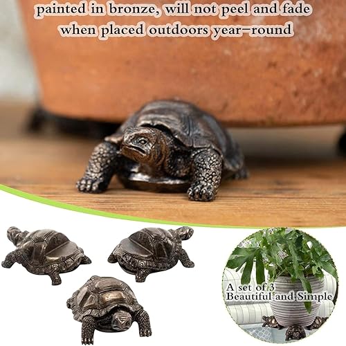 Lot de 3 pieds décoratifs en résine pour pot de fleurs en forme de tortue pour extérieur, statue d'animaux, pieds de pot de fleurs (tortue)