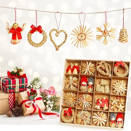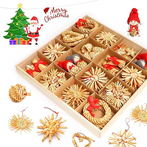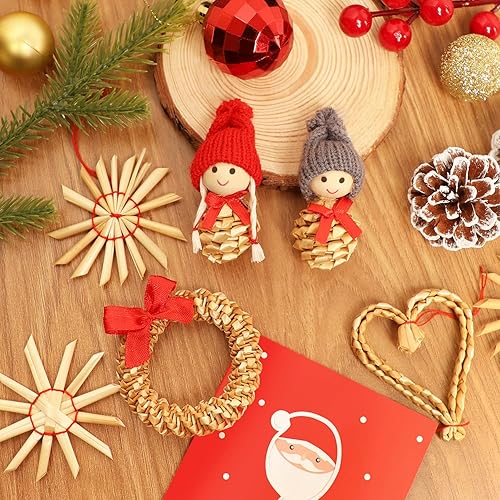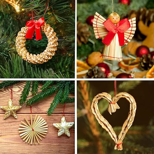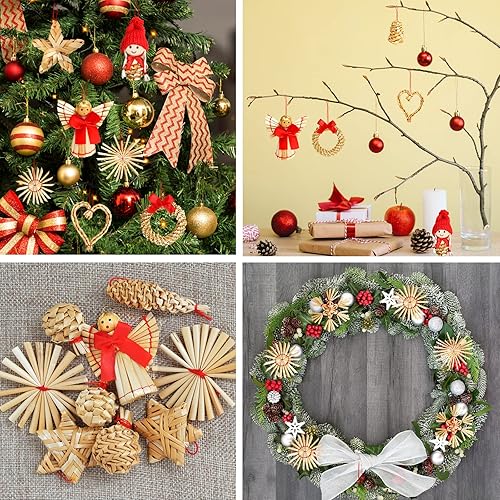 52 pièces Paille Etoile Objets de Décoration Noël Deco Kit,Personnalisé Naturelle Suspension Ange de Noel pour Sapin, guirlandes, Fête de Noël