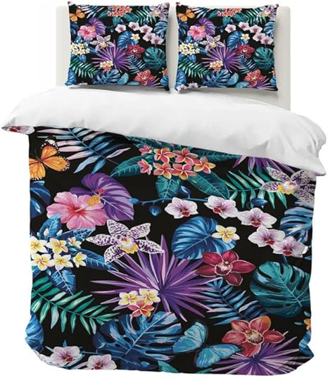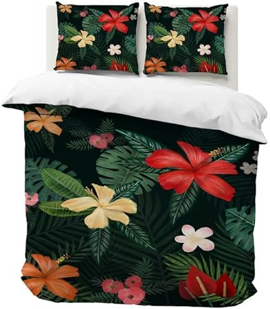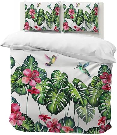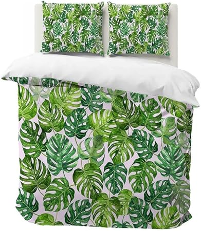 Housse de Couette 220x240 Eucalyptus Parure de Lit 2 Personnes avec Fermeture éclair, Housses de Couettes Imprimée Plantes en Microfibre avec 2 Taie d'oreiller 65x65