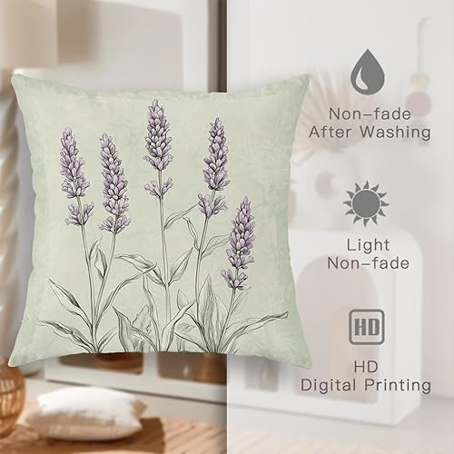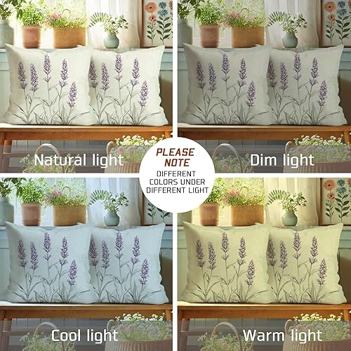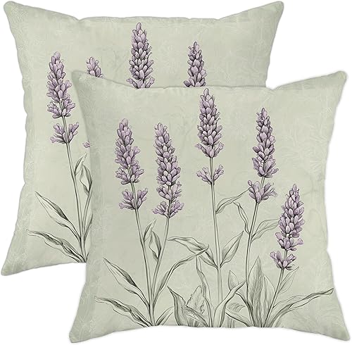 Lot de 2 housses de coussin décoratives carrées douces à motif floral violet lavande pour décoration printanière de style rustique pour maison, canapé, lit, canapé, 50,8 x 50,8 cm