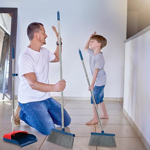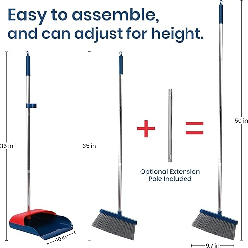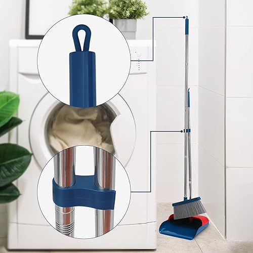 TreeLen Ensemble Balai Debout avec Pelle à Poussière, Balai avec Manche de 50” de Long, 20° Anglé pour Un Nettoyage Ergonomique à la Maison ou au Bureau, Blanc