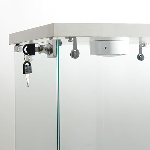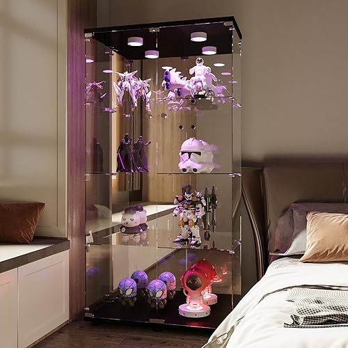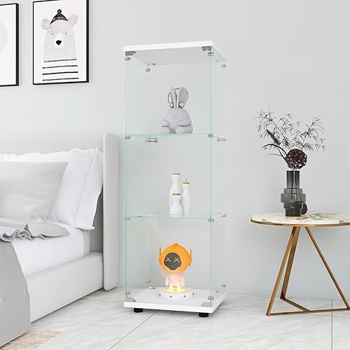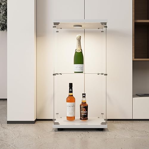 Vitrine en verre avec éclairage LED - Armoire de rangement en verre - Blanc - 2 niveaux avec serrure - Armoire de curiosité - Armoire en verre sur pied pour salon, chambre à coucher, bureau (1 porte