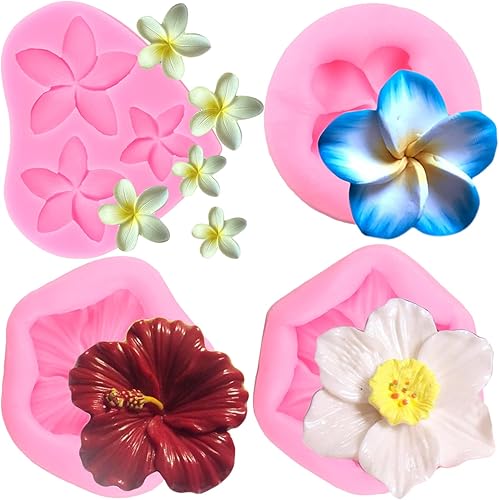 RFGHAC Lot de 4 moules en silicone en forme de fleur de frangipanier pour décoration de gâteaux, bonbons, chocolat, pâte à sucre