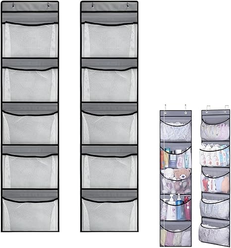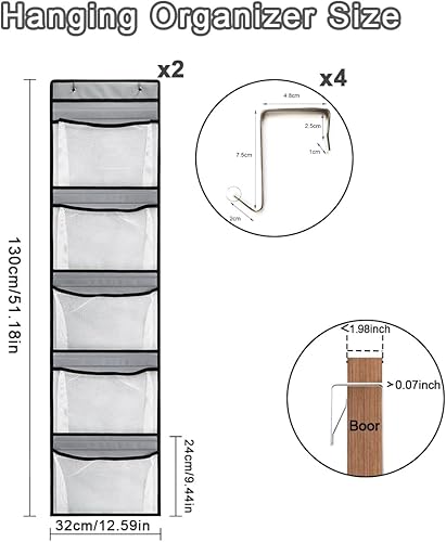 Toivize Rangement Porte à Suspendre 2 Pièces, Étagère Suspendue Rangement Suspendu Porte de Grande Capacité avec 5 Poches en Filet pour Chambre à Coucher, Salle de Bain, Placard