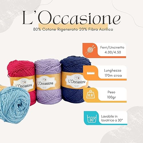 Tricot Cafè - L'Occasione - Pelote mélangée coton et acrylique pour tricoter des aiguilles à tricoter légères et respirantes/crochet : 4.00/4.50 rose baby 14 3pcs 300 gr