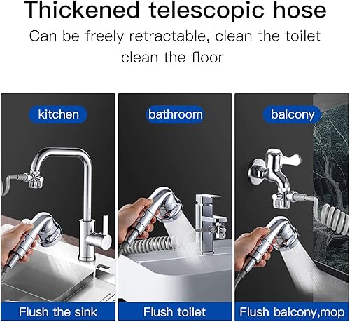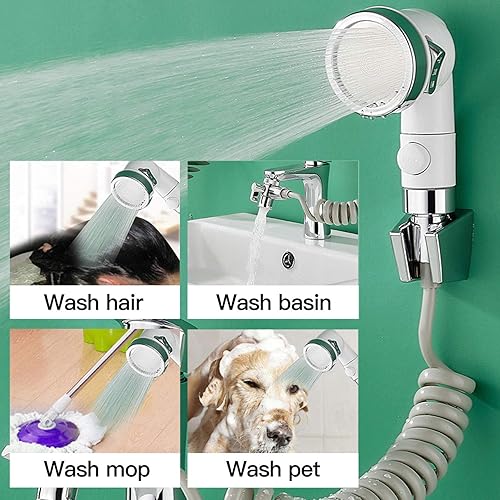 Ensemble de Pommeau de Douche Externe pour Lavabo,Pommeau de Douche à Tube Télescopique de 1.5m Avec Trois Modes,pour se Laver les Cheveux ou Nettoyer L'évier Nettoyer les Toilettes (sans robinet)