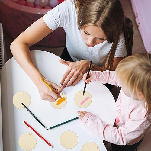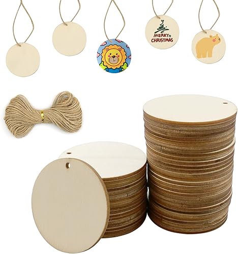 MytaYt 5cm Disque en Bois Rond 50 Pcs Rondins Bois Décoratif Tranche Rondes Tranches de Bois avec Trou pour Décoration de Noël, Peinture, Signature