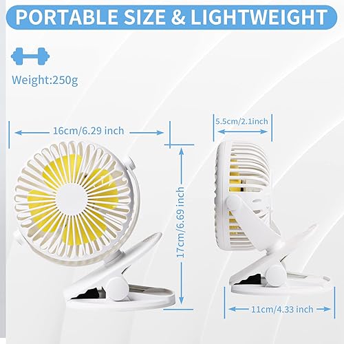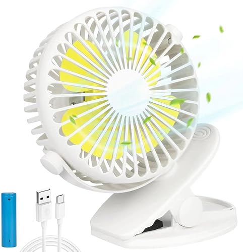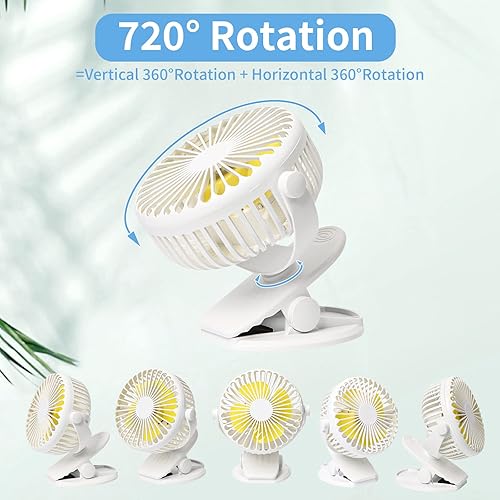 EXTFANS Ventilateur USB Puissant, Ventilateur à Pince de Table à Clip Silencieux 3 Vitesses, Réglage à 720° pour le Bureau, Camping, Poussette, Voiture (white)