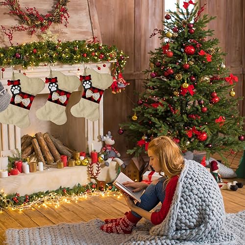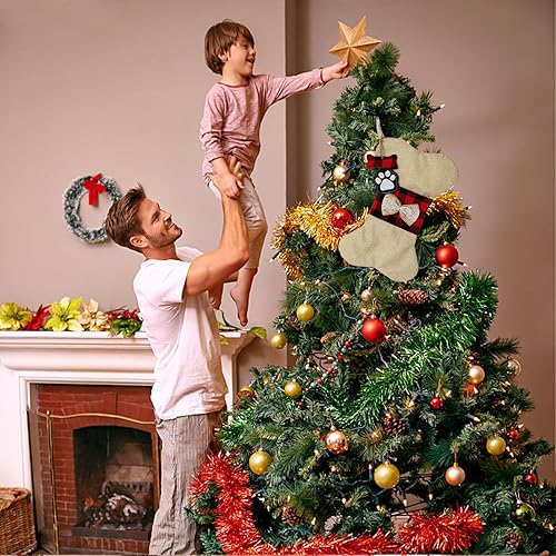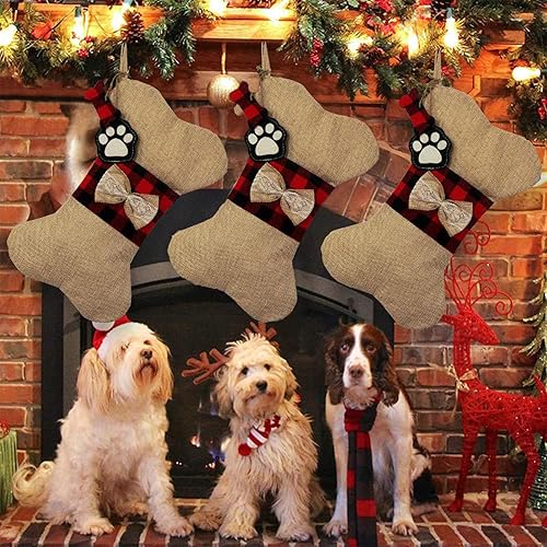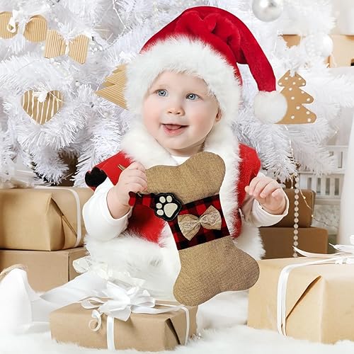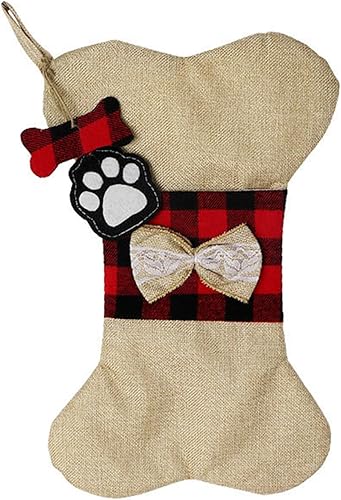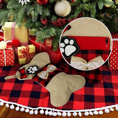 TELAIN Chaussettes de Noël en forme d'os de chien, décoration de Noël avec nœud pour animaux de compagnie, mini chaussettes de Noël pour chiens, prêtes à accrocher, 25,4 x 46,5 cm
