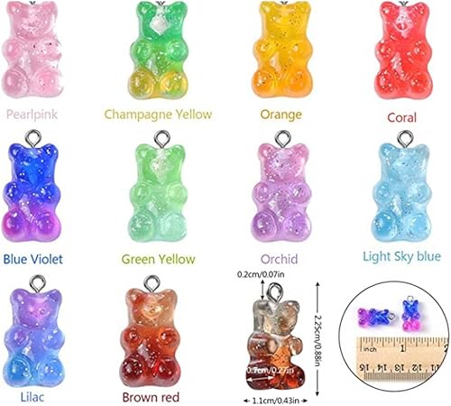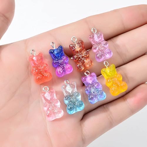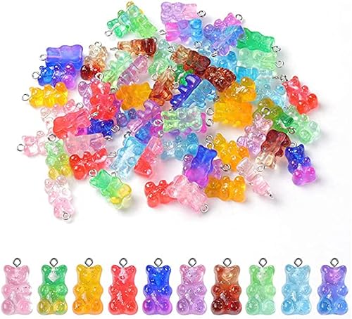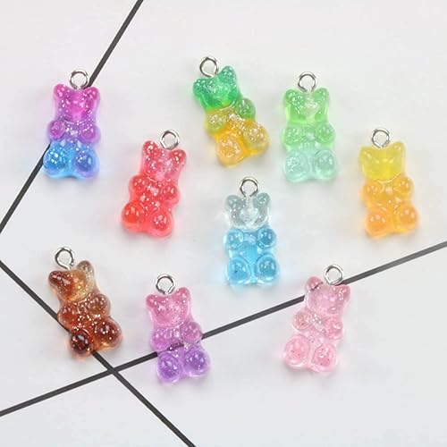 50 Pièces Pendentifs Ours en Résine, colorée Pendentifs Ours en Résine Charms d’Ours Porte-clés en Résine Dégradé Ours Gommeux Charmes Ours, pour Création de Bijoux et Artisanat DIY, 10 couleurs