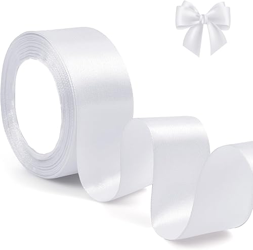 ihaspoko Ruban Satin Blanc 4cm x 22m - Cadeau pour Emballage, Mariage, Décoration de Fête | Ruban Tissu Polyester Brillant pour DIY, Noeuds Papillon, Cartes