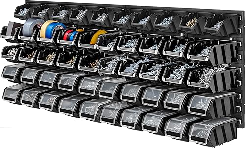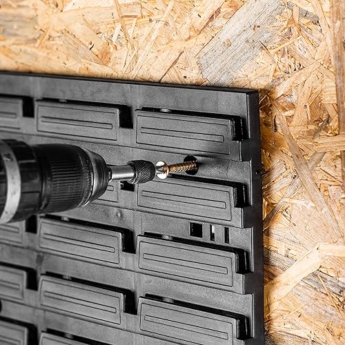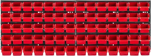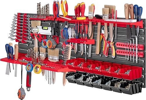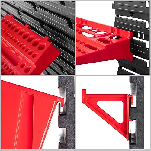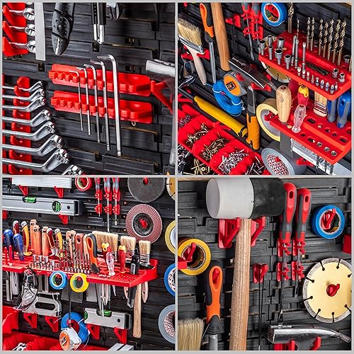 KADAX Étagère d'atelier, 116 x 39 cm, étagère murale à outils, en plastique robuste, système de stockage résistant aux UV, plaques murales extensibles, atelier ou jardin (rouge, 50 pièces) K7708