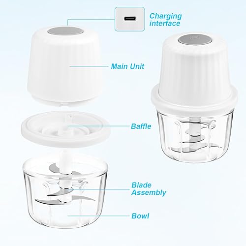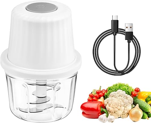 Carehabi Mini hachoir électrique, 400 ml, hachoir à légumes, recharge USB, hachoir portable pour viande, oignons, ail