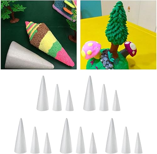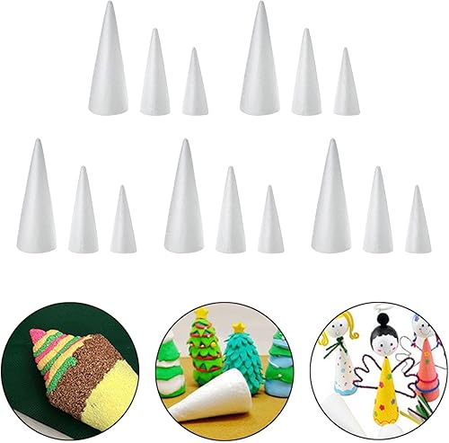 rockible 15pcs Cônes en Mousse Cônes en Polystyrène 14cm 23cm 25cm de Hauteur Décorations Faites à La Main Cônes d'arbre en Mousse pour Les Célébrations Peintu