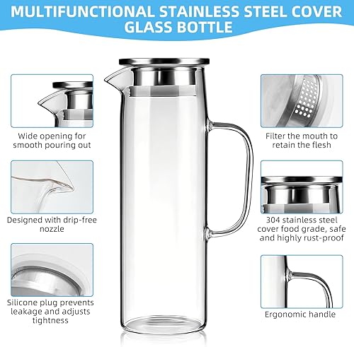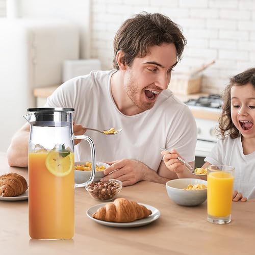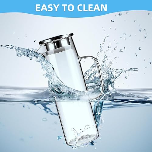 Carafe en Verre avec Couvercle - 1,5 L,ouilloire résistante à la chaleur Avec Brosse et Couverture, pour eau chaude/froide, vin, thé glacé et boissons à base de jus