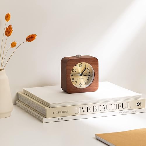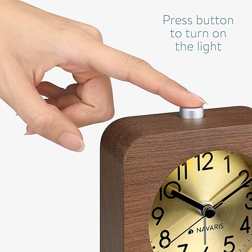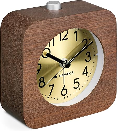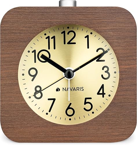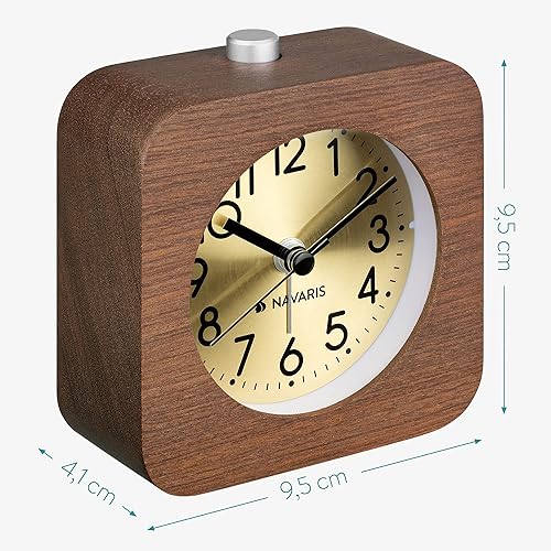 Navaris Réveil analogique Bois - Horloge à Aiguilles Classique avec Fonctions Heure Alarme Snooze et rétroéclairage - Réveil carré Bois foncé