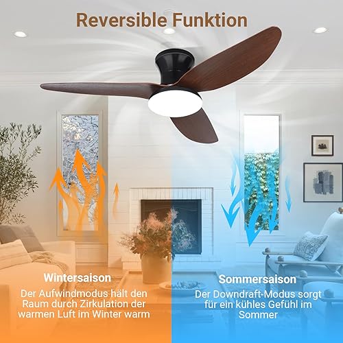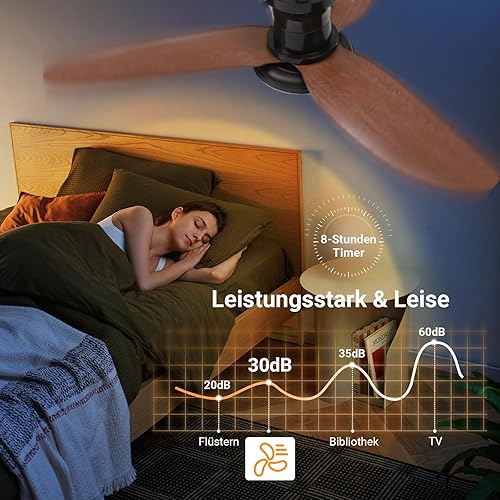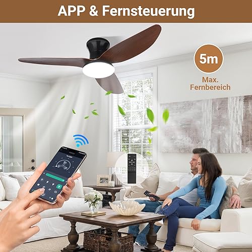 Ventilateur de Plafond avec éclairage, Ø100cm App Contrôle & Télécommande, Plafonnier avec Ventilateur, 6 Vitesses, 3 Couleurs Variables, Moteur DC Silencieux, Fonctionnement été-hiver, Minuterie