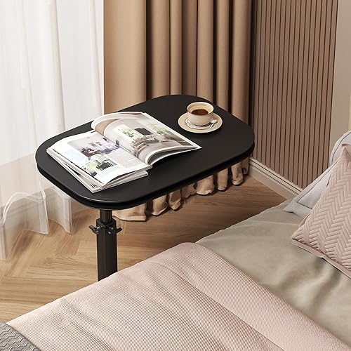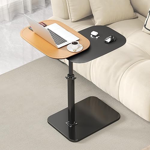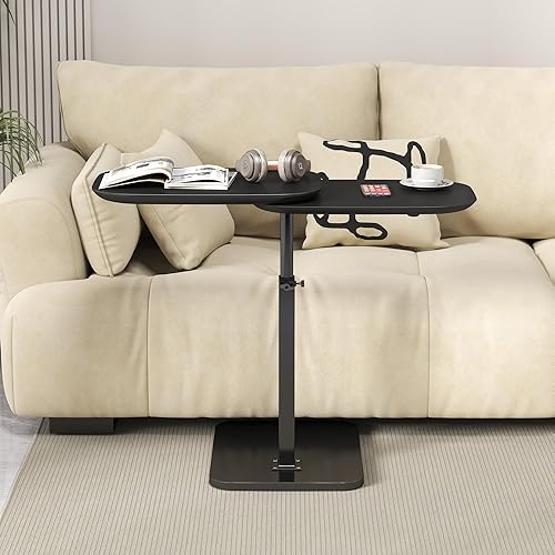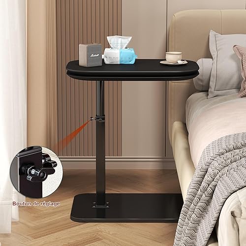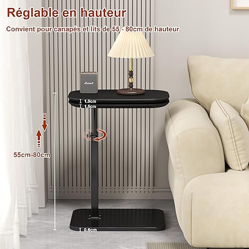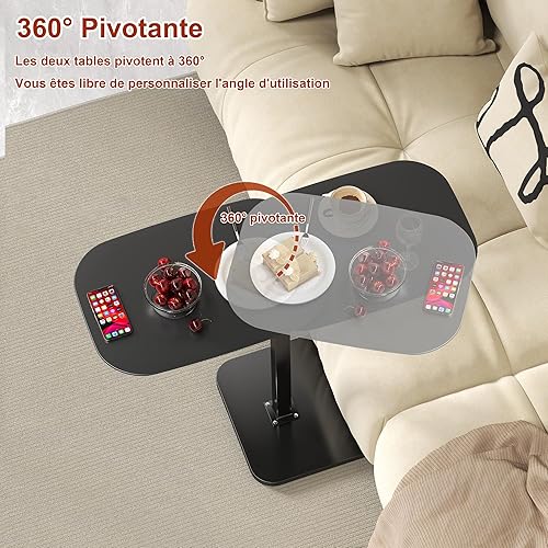 Table d'appoint en Forme de C Hauteur reglable, Table canapé pivotante à 360°, Deux Planches de Table, Ordinateur Portable Table pour canapé/lit, Petite café C Tables pour Salon/Chambre (Black)
