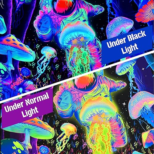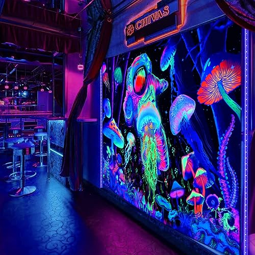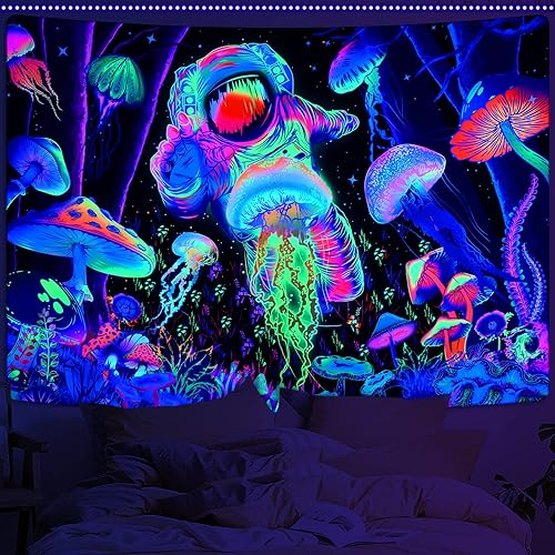 Alishomtll Tapisserie abstraite à lumière noire, impression UV, psychédélique, décoration murale astronaute, art mural pour chambre à coucher, 210 x 150 cm