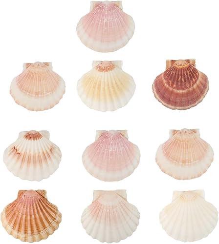 Nhgkju Lot de 10 grandes tailles d'environ 10 à 12 cm - Bols aléatoires - Blanc naturel - Grande coquille Saint-Jacques - Décoration de la maison - Peinture faite à la main