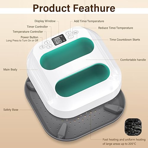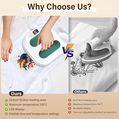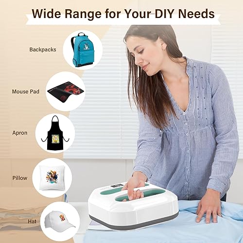Presse a Chaud Textile,Heat Press Machine 22.5cm*22.5cm,Mini Presse à Chaud avec Minuterie,Temperature Control,pour T-Shirts, Sacs Transfert de Chaleur