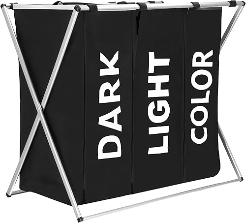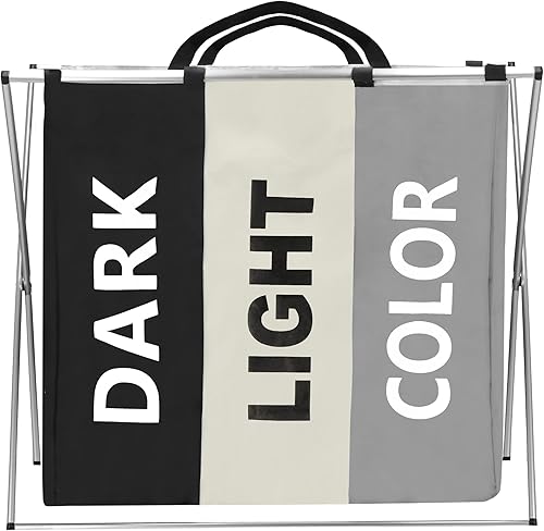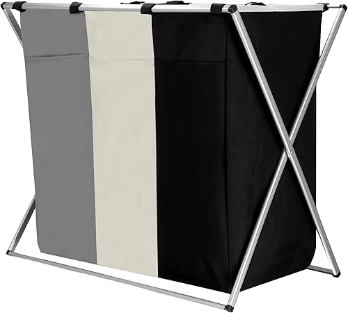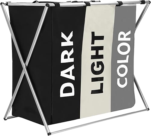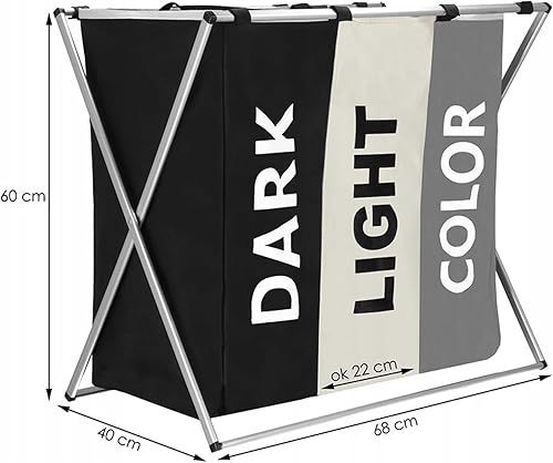 Organisateur à linge Springos 146L, 3 compartiments XL, pliable avec cadre en aluminium, fermeture à cordon, poignées de transport, pour tri facile du linge et rangement compact